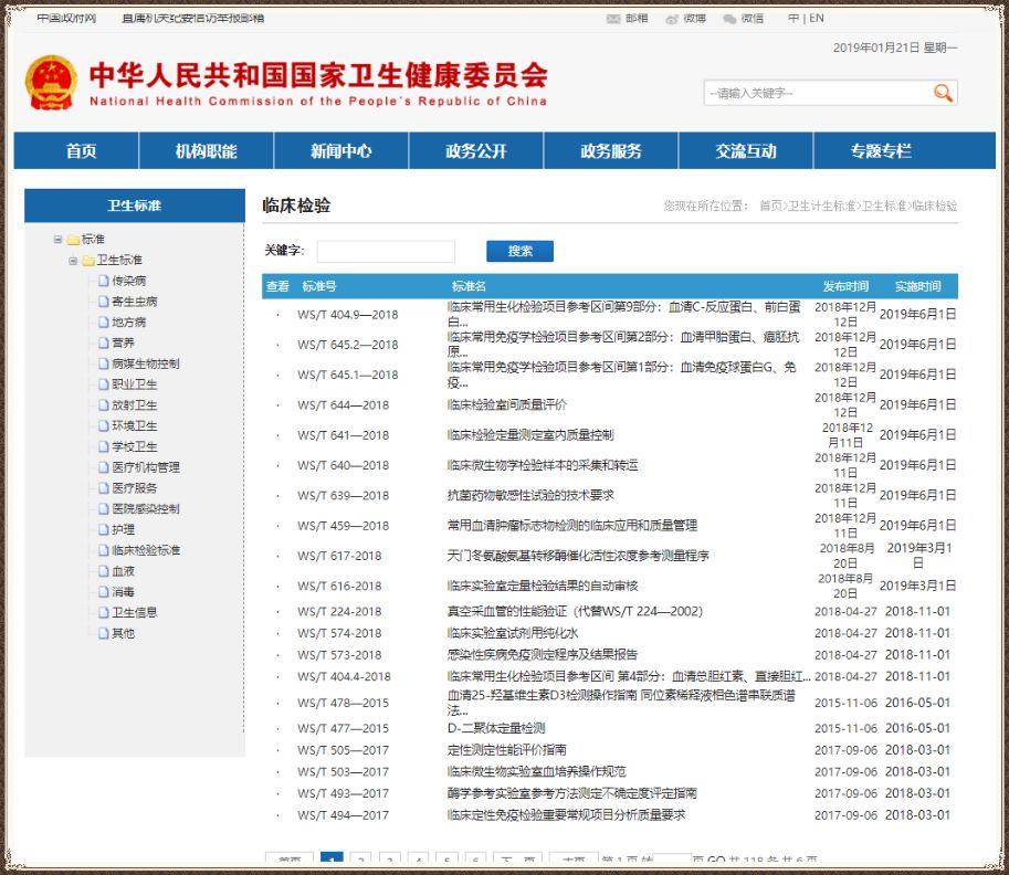 临床检验行业主要卫生标准分类